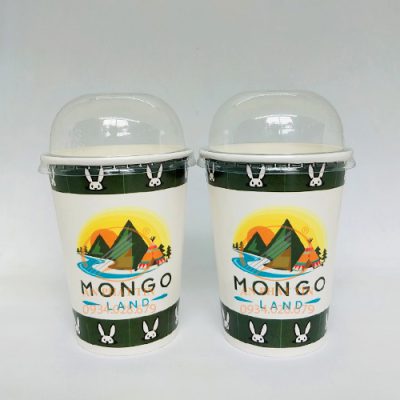 Ly giấy 14oz Mongo Land là một trong những sản phẩm được nhiều người ưa chuộng nhất. Nguyên liệu để tạo nên ly này là giấy trắng tinh khiết 100% nhập khẩu trực tiếp từ Indonesia có tráng PE. Sản phẩm thường được sử dụng để đựng nước uống, trà sữa, nước ngọt, cafe…